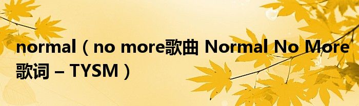 大家好,綜合小編來(lái)為大家解答以上問(wèn)題。normal,no more歌曲 Normal No More歌詞 – TYSM很多人還不知道,現(xiàn)在讓我們一起來(lái)看看吧!