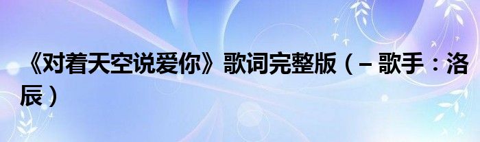 大家好,綜合小編來為大家解答以上問題。《對著天空說愛你》歌詞完整版,– 歌手:洛辰很多人還不知道,現在讓我們一起來看看吧!