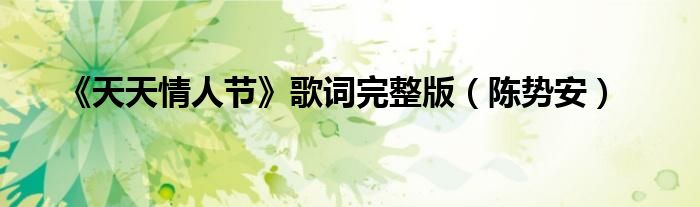 大家好,綜合小編來為大家解答以上問題。《天天情人節》歌詞完整版,陳勢安很多人還不知道,現在讓我們一起來看看吧!