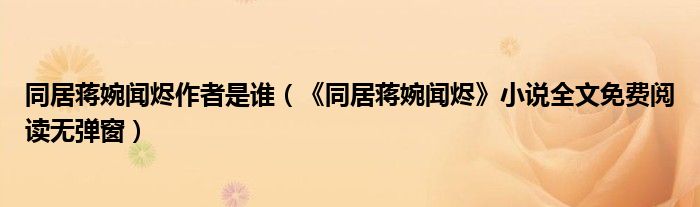 大家好,綜合小編來為大家解答以上問題。同居蔣婉聞燼作者是誰,《同居蔣婉聞燼》小說全文免費閱讀無彈窗很多人還不知道,現在讓我們一起來看看吧!