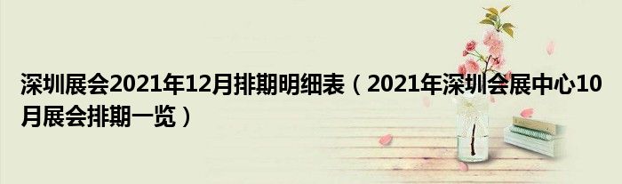 大家好,綜合小編來為大家解答以上問題。深圳展會2021年12月排期明細表,2021年深圳會展中心10月展會排期一覽很多人還不知道,現(xiàn)在讓我們一起來看看吧!