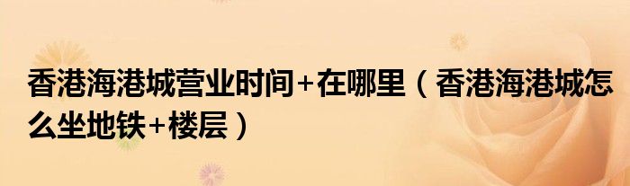 那么,今天就來了解一下香港海港城的基本信息吧!這樣我們就可以知道如何在這里購物了!