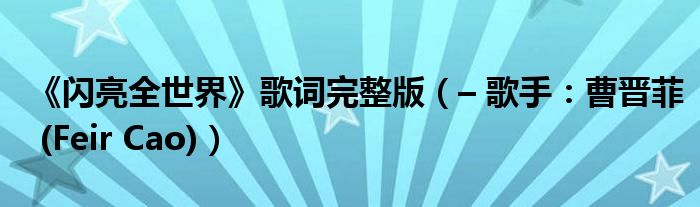大家好,綜合小編來為大家解答以上問題。《閃亮全世界》歌詞完整版,– 歌手:曹晉菲 (Feir Cao)很多人還不知道,現在讓我們一起來看看吧!