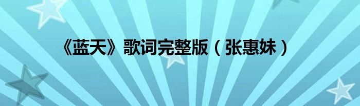 大家好,綜合小編來(lái)為大家解答以上問(wèn)題。《藍(lán)天》歌詞完整版,張惠妹很多人還不知道,現(xiàn)在讓我們一起來(lái)看看吧!