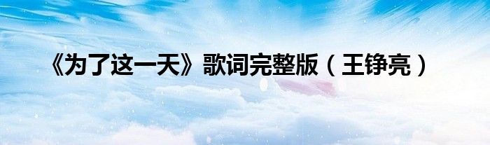 大家好,綜合小編來為大家解答以上問題。《為了這一天》歌詞完整版,王錚亮很多人還不知道,現在讓我們一起來看看吧!