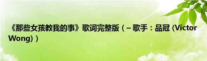 大家好,綜合小編來為大家解答以上問題。《那些女孩教我的事》歌詞完整版,– 歌手:品冠 (Victor Wong)很多人還不知道,現在讓我們一起來看看吧!