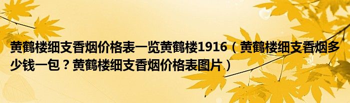 大家好,綜合小編來為大家解答以上問題。黃鶴樓細支香煙價格表一覽黃鶴樓1916,黃鶴樓細支香煙多少錢一包?黃鶴樓細支香煙價格表圖片很多人還不知道,現在讓我們一起來看看吧!