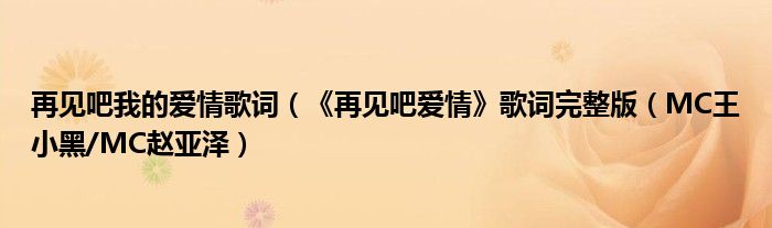 大家好,綜合小編來為大家解答以上問題。再見吧我的愛情歌詞,《再見吧愛情》歌詞完整版,MC王小黑/MC趙亞澤很多人還不知道,現(xiàn)在讓我們一起來看看吧!