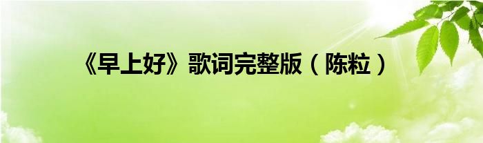 大家好,綜合小編來為大家解答以上問題。《早上好》歌詞完整版,陳粒很多人還不知道,現在讓我們一起來看看吧!