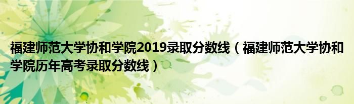 大家好,綜合小編來為大家解答以上問題。福建師范大學(xué)協(xié)和學(xué)院2019錄取分?jǐn)?shù)線,福建師范大學(xué)協(xié)和學(xué)院歷年高考錄取分?jǐn)?shù)線很多人還不知道,現(xiàn)在讓我們一起來看看吧!