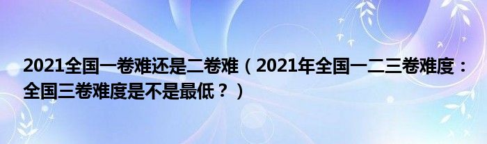 大家好,綜合小編來為大家解答以上問題。2021全國一卷難還是二卷難,2021年全國一二三卷難度:全國三卷難度是不是最低?很多人還不知道,現在讓我們一起來看看吧!