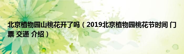 大家好,綜合小編來為大家解答以上問題。北京植物園山桃花開了嗎,2019北京植物園桃花節時間 門票 交通 介紹很多人還不知道,現在讓我們一起來看看吧!
