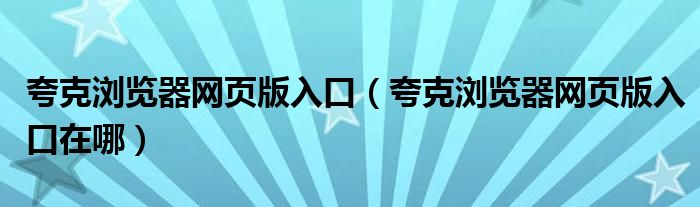 大家好,綜合小編來為大家解答以上問題。夸克瀏覽器網(wǎng)頁版入口,夸克瀏覽器網(wǎng)頁版入口在哪很多人還不知道,現(xiàn)在讓我們一起來看看吧!