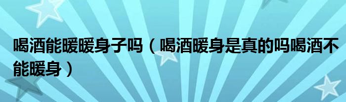 大家好,綜合小編來為大家解答以上問題。喝酒能暖暖身子嗎,喝酒暖身是真的嗎喝酒不能暖身很多人還不知道,現在讓我們一起來看看吧!