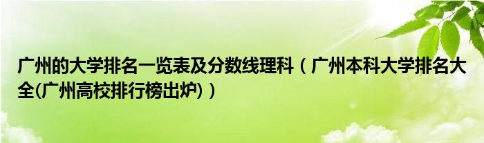 大家好,綜合小編來為大家解答以上問題。廣州的大學排名一覽表及分數線理科,廣州本科大學排名大全(廣州高校排行榜出爐)很多人還不知道,現在讓我們一起來看看吧!