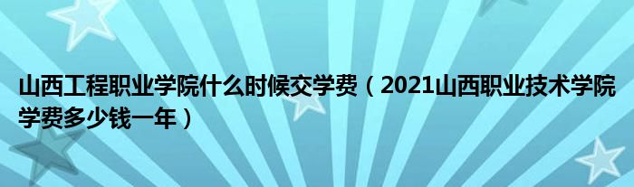 大家好,綜合小編來為大家解答以上問題。山西工程職業(yè)學院什么時候交學費,2021山西職業(yè)技術學院學費多少錢一年很多人還不知道,現(xiàn)在讓我們一起來看看吧!