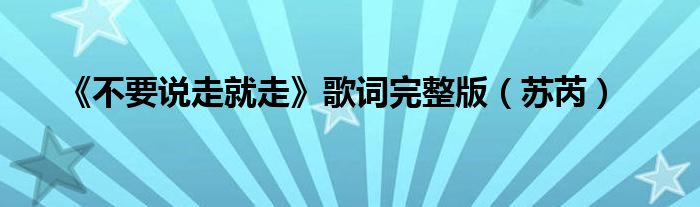 大家好,綜合小編來為大家解答以上問題。《不要說走就走》歌詞完整版,蘇芮很多人還不知道,現在讓我們一起來看看吧!