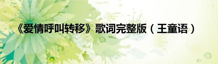 大家好,綜合小編來為大家解答以上問題。《愛情呼叫轉移》歌詞完整版,王童語很多人還不知道,現在讓我們一起來看看吧!