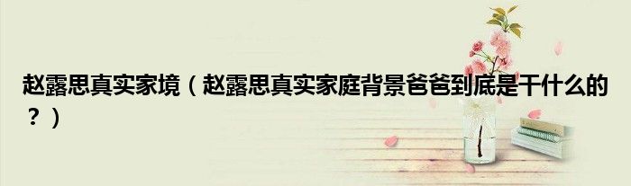 9、 因為趙露思之前知名度不高,官方也沒有介紹她是哪家公司的簽約藝人,所以推測趙露思家庭背景雄厚,父母進入娛樂圈發展,獲得了很多優質資源?,F在看來是經紀公司的功勞。趙露思的爸爸可能是個普通人,家境可能只是比一般人好一點,但還沒到富二代的程度。當然這只是網友的猜測,也有可能趙露思的父親是四川首富。具體是什么情況?我們需要知道更多