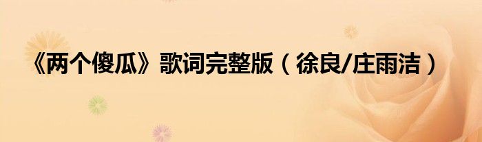 大家好,綜合小編來為大家解答以上問題。《兩個傻瓜》歌詞完整版,徐良/莊雨潔很多人還不知道,現(xiàn)在讓我們一起來看看吧!