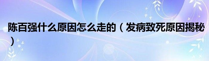 大家好,綜合小編來為大家解答以上問題。陳百強(qiáng)什么原因怎么走的,發(fā)病致死原因揭秘很多人還不知道,現(xiàn)在讓我們一起來看看吧!