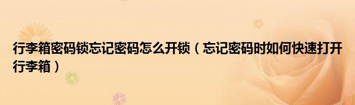 大家好,綜合小編來為大家解答以上問題。行李箱密碼鎖忘記密碼怎么開鎖,忘記密碼時如何快速打開行李箱很多人還不知道,現在讓我們一起來看看吧!