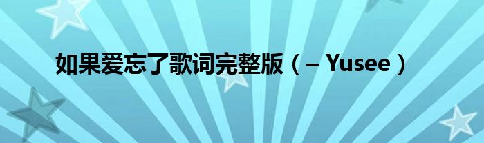 大家好,綜合小編來(lái)為大家解答以上問(wèn)題。如果愛(ài)忘了歌詞完整版,– Yusee很多人還不知道,現(xiàn)在讓我們一起來(lái)看看吧!
