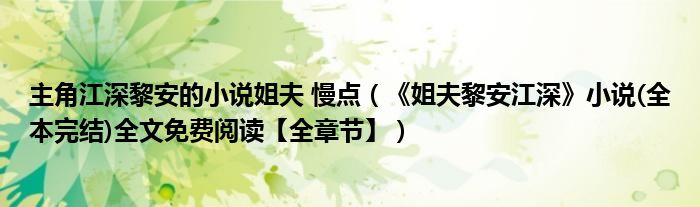 大家好,綜合小編來為大家解答以上問題。主角江深黎安的小說姐夫 慢點,《姐夫黎安江深》小說(全本完結)全文免費閱讀【全章節】很多人還不知道,現在讓我們一起來看看吧!