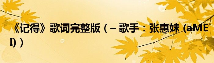 大家好,綜合小編來為大家解答以上問題。《記得》歌詞完整版,– 歌手:張惠妹 (aMEI)很多人還不知道,現在讓我們一起來看看吧!