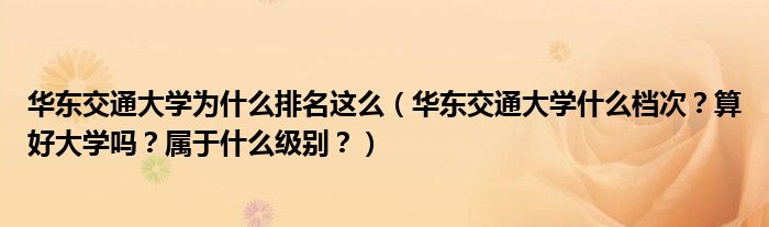 大家好,綜合小編來為大家解答以上問題。華東交通大學為什么排名這么,華東交通大學什么檔次?算好大學嗎?屬于什么級別?很多人還不知道,現在讓我們一起來看看吧!