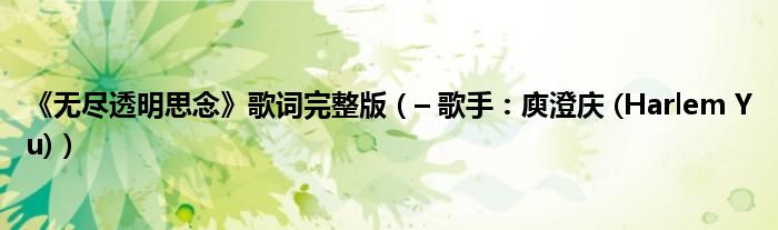 大家好,綜合小編來為大家解答以上問題?!稛o盡透明思念》歌詞完整版,– 歌手:庾澄慶 (Harlem Yu)很多人還不知道,現在讓我們一起來看看吧!