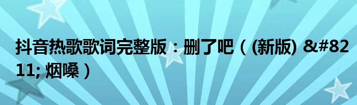 大家好,綜合小編來為大家解答以上問題。抖音熱歌歌詞完整版:刪了吧,(新版) – 煙嗓很多人還不知道,現在讓我們一起來看看吧!