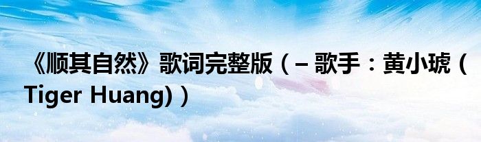 大家好,綜合小編來為大家解答以上問題。《順其自然》歌詞完整版,– 歌手:黃小琥 (Tiger Huang)很多人還不知道,現在讓我們一起來看看吧!