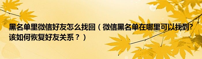 大家好,綜合小編來為大家解答以上問題。黑名單里微信好友怎么找回,微信黑名單在哪里可以找到?該如何恢復好友關系?很多人還不知道,現在讓我們一起來看看吧!