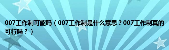 大家好,綜合小編來為大家解答以上問題。007工作制可能嗎,007工作制是什么意思?007工作制真的可行嗎?很多人還不知道,現(xiàn)在讓我們一起來看看吧!
