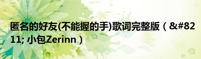大家好,綜合小編來為大家解答以上問題。匿名的好友(不能握的手)歌詞完整版,– 小包Zerinn很多人還不知道,現在讓我們一起來看看吧!