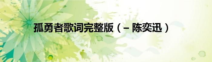 大家好,綜合小編來為大家解答以上問題。孤勇者歌詞完整版,– 陳奕迅很多人還不知道,現在讓我們一起來看看吧!