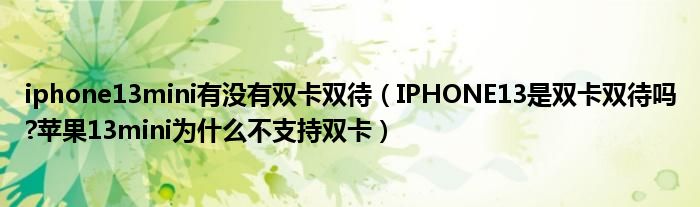 2、 為什么蘋果13 mini不支持雙卡為什么蘋果13 MINI不支持雙卡?一般認為蘋果13 mini不支持雙卡有兩個原因。