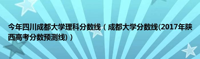 大家好,綜合小編來為大家解答以上問題。今年四川成都大學理科分數(shù)線,成都大學分數(shù)線(2017年陜西高考分數(shù)預測線)很多人還不知道,現(xiàn)在讓我們一起來看看吧!