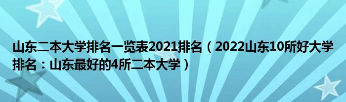 大家好,綜合小編來為大家解答以上問題。山東二本大學排名一覽表2021排名,2022山東10所好大學排名:山東最好的4所二本大學很多人還不知道,現在讓我們一起來看看吧!
