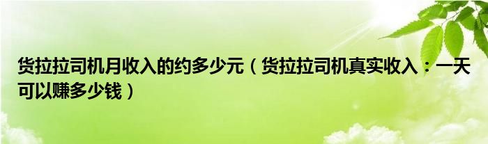 4、 以上是2022貨運拉拉司機真實收入的介紹。希望對大家有幫助。