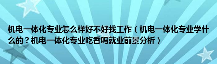 大家好,綜合小編來為大家解答以上問題。機電一體化專業怎么樣好不好找工作,機電一體化專業學什么的?機電一體化專業吃香嗎就業前景分析很多人還不知道,現在讓我們一起來看看吧!