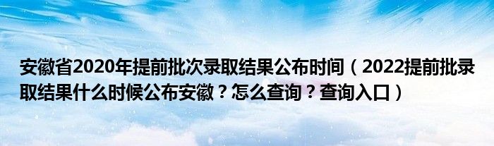 大家好,綜合小編來為大家解答以上問題。安徽省2020年提前批次錄取結果公布時間,2022提前批錄取結果什么時候公布安徽?怎么查詢?查詢入口很多人還不知道,現在讓我們一起來看看吧!