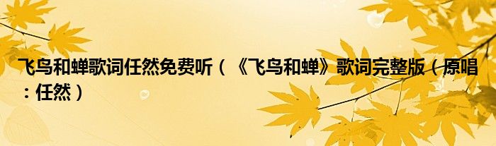 大家好,綜合小編來為大家解答以上問題。飛鳥和蟬歌詞任然免費聽,《飛鳥和蟬》歌詞完整版,原唱:任然很多人還不知道,現在讓我們一起來看看吧!