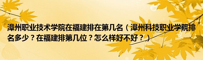 大家好,綜合小編來為大家解答以上問題。漳州職業技術學院在福建排在第幾名,漳州科技職業學院排名多少?在福建排第幾位?怎么樣好不好?很多人還不知道,現在讓我們一起來看看吧!