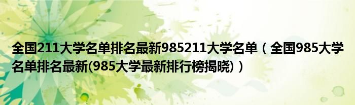 大家好,綜合小編來為大家解答以上問題。全國211大學名單排名最新985211大學名單,全國985大學名單排名最新(985大學最新排行榜揭曉)很多人還不知道,現在讓我們一起來看看吧!
