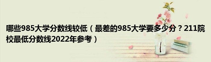 大家好,綜合小編來為大家解答以上問題。哪些985大學分數線較低,最差的985大學要多少分?211院校最低分數線2022年參考很多人還不知道,現在讓我們一起來看看吧!