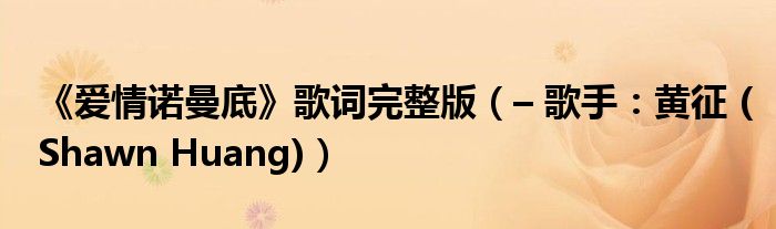 大家好,綜合小編來為大家解答以上問題。《愛情諾曼底》歌詞完整版,– 歌手:黃征 (Shawn Huang)很多人還不知道,現在讓我們一起來看看吧!