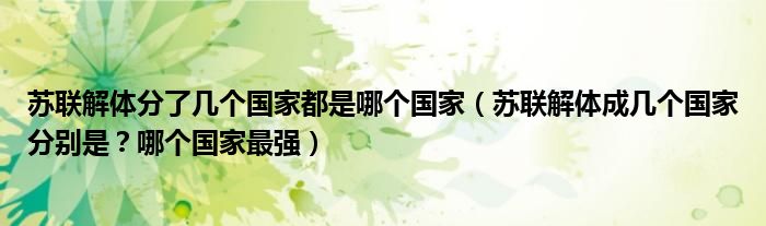大家好,綜合小編來為大家解答以上問題。蘇聯解體分了幾個國家都是哪個國家,蘇聯解體成幾個國家分別是?哪個國家最強很多人還不知道,現在讓我們一起來看看吧!