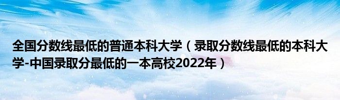 大家好,綜合小編來為大家解答以上問題。全國分?jǐn)?shù)線最低的普通本科大學(xué),錄取分?jǐn)?shù)線最低的本科大學(xué)-中國錄取分最低的一本高校2022年很多人還不知道,現(xiàn)在讓我們一起來看看吧!